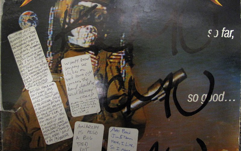 "As with the last 2 Megadeth LPs, it takes a few listens to get. The 'Anarchy' [in the UK, Sex Pistols] cover is kind of lame but a nice tribute, features Steve Jones on Guitar. My two favorite songs are 2.3 + 2.4. 'Hook in Mouth' is a great anti-PMRC song. [Kids, ask your parents, or aunts or uncles.] A very good one to play. 'In My Darkest Hour' is a tribute to Metallica bass player Cliff Burton who was killed last year in a tour bus accident. And for those who don't know, Dave Mustaine (singer, writer, guitarist) was in the original line-up of Metallica and was responsible for much of their writing on their first 2 LPs. If that helps out. This is a good LP from a thinking man's metal band (yes) whose philosophy is 'death to noise metal.' Give it a try." "Wimpy record company. See sticker on back lower right corner. The band should've said 'No way.'" "Mustaine is actually quite intelligent. What a relief. In this 'Genre' it's so rare." "Anarchy is also a big red dot." "Well they look goofy and swety but this is a fun record to play." "Any band Jim & Tammi [again, ask your elders] hate, I like, so I adore this particular work." "Mustaine is god." |
