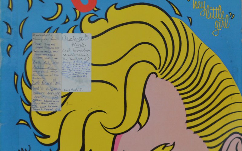 Jimmy and the Mustangs might be lovely people without a bone of misogyny in their bodies (they did, according to their "I swear a member of the band didn't write this" Wikipedia page, make their live debut opening up for the Go-Go's), but there are a few things about their debut album, Hey Little Girl, that probably wouldn't fly these days - and even raised a few eyebrows 35 years ago, when this record turned up at KCMU. I mean, we can start with the creepy vibe of the title, and then move right around to the back cover, as mentioned by one of our reviewers.Either the Go-Go's knew these guys and saw something that we don't here, or they just didn't look too closely at who was opening up for them. Just in the interest of peace and goodwill, I prefer to believe the former. But I'll probably be more likely to listen to a Go-Go's record than this one any time soon.