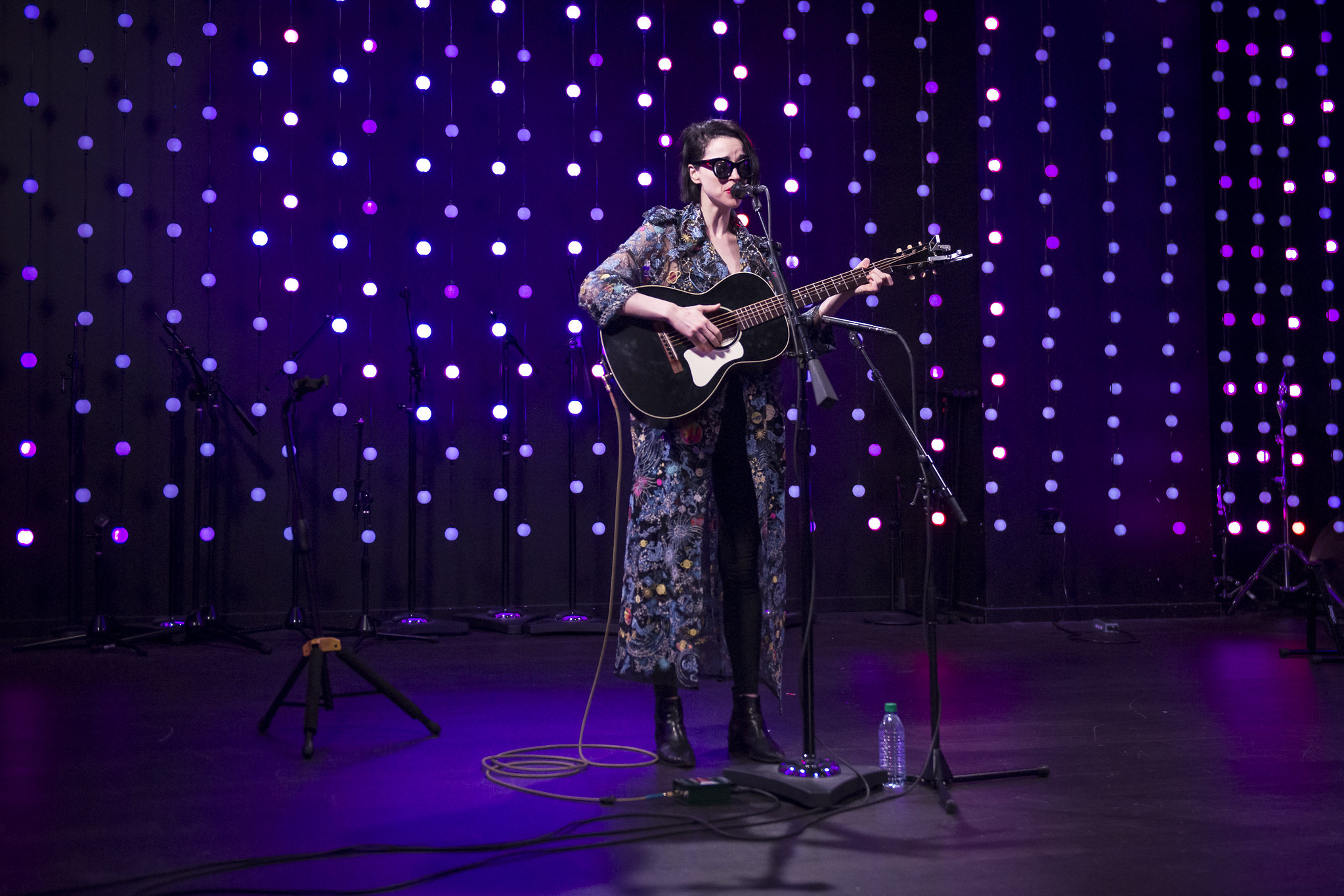 In the middle of her two night stand at The Moore Theatre here in Seattle, St. Vincent stopped by the KEXP studios to share songs from her latest LP, Masseduction (with a fan-favorite from 2011's Strange Mercy thrown in for fun). With just an acoustic guitar and her powerful voice, St. Vincent (real name: Annie Clark) stripped the intricately textured, densely produced sound of the new release, giving KEXP listeners a fresh new take on these tracks. Revisit her interview with DJ Cheryl Waters, where she talks about her recent film work, designing guitars, and her time hiding out in a bathroom here in Seattle.