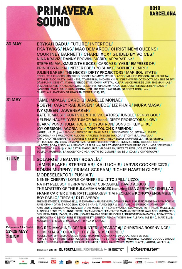 Check out the full list of performers on the poster below. Primavera Sound runs from May 20 to June 1, 2019 at Barcelona, Spain’s Parc del Fòrum.