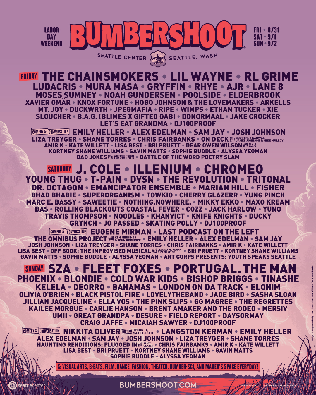 Earlier this year, we shared the preliminary line-up for the 2018 Bumbershoot Music & Arts Festival — now in its 48th year, this annual event brings some of the best in music, arts, comedy, and more to Seattle Center over Labor Day weekend, Friday, August 31st through Sunday, September 2nd. Today, the festival has shared their day-by-day schedule. Take a look and circle your faves below: