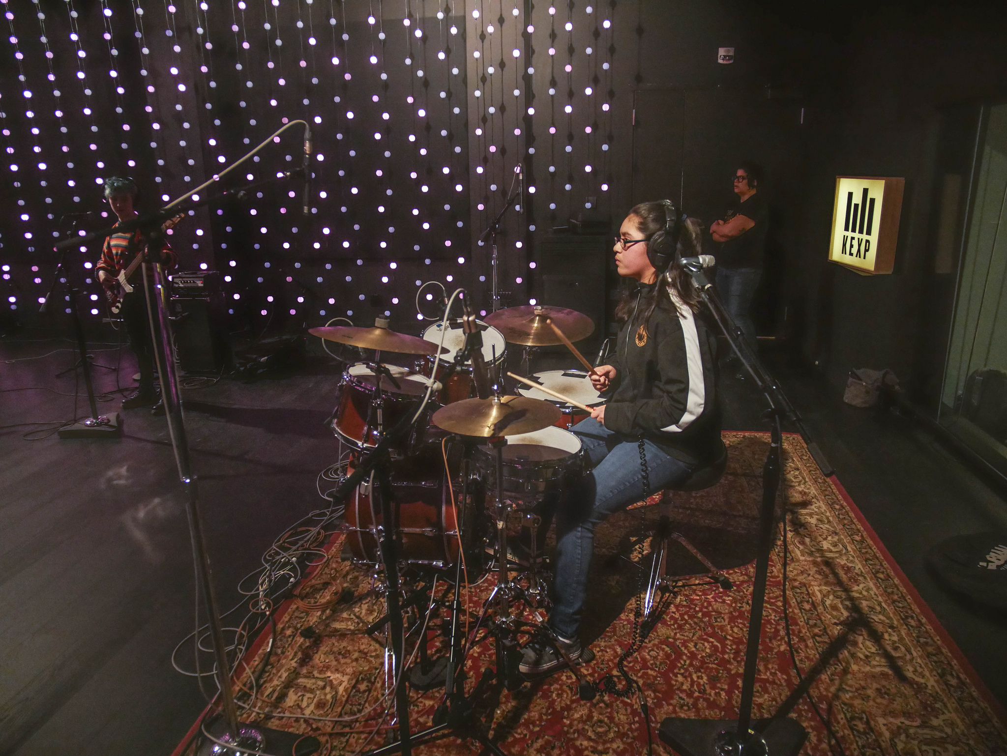 Founded in 1911 and celebrated annually on March 8th, International Women's Day is "a global day celebrating the social, economic, cultural and political achievements of women. The day also marks a call to action for accelerating gender parity." In honor of the day, KEXP is featuring music from women, women-identifying, and non-binary folx all throughout the day. Tune in at 8:30 AM PST as DJ John Richards chats with our friends at Rain City Rock Camp, a Seattle-based organization whose mission is to empower girls, women, and gender non-conforming individuals to engage their creative potential through music. (You can also hear two in-studio performances from their alumni tomorrow: The Black Unicorns, a group of eight to nine-year-olds, at 9 AM and Denim Jeanne at 2:30 PM PST. Check out photos from their sessions below.)