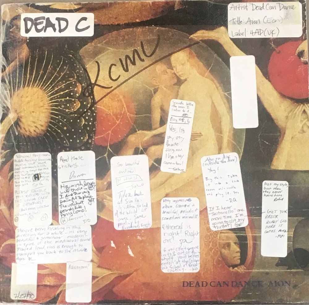 But what is goth music? It's a tricky genre — if it even is a genre — to define, encompassing as it does a wide range of sounds. Sometimes it's loud, sometimes it's heavy, sometimes it rocks, sometimes it's pretty. I figure the safest definition is "music beloved by goths," and we are on pretty solid ground in categorizing the idiosyncratic, decidedly non-rocking music of Dead Can Dance in that category. I don't know if there were any goth DJs at KCMU in 1990, when the band's 5th album Aion was released, but the album was almost universally well-received — to the point that there started to be a clamoring to move it out of heavy rotation, which always indicates something has been well-loved by DJs and listeners alike.