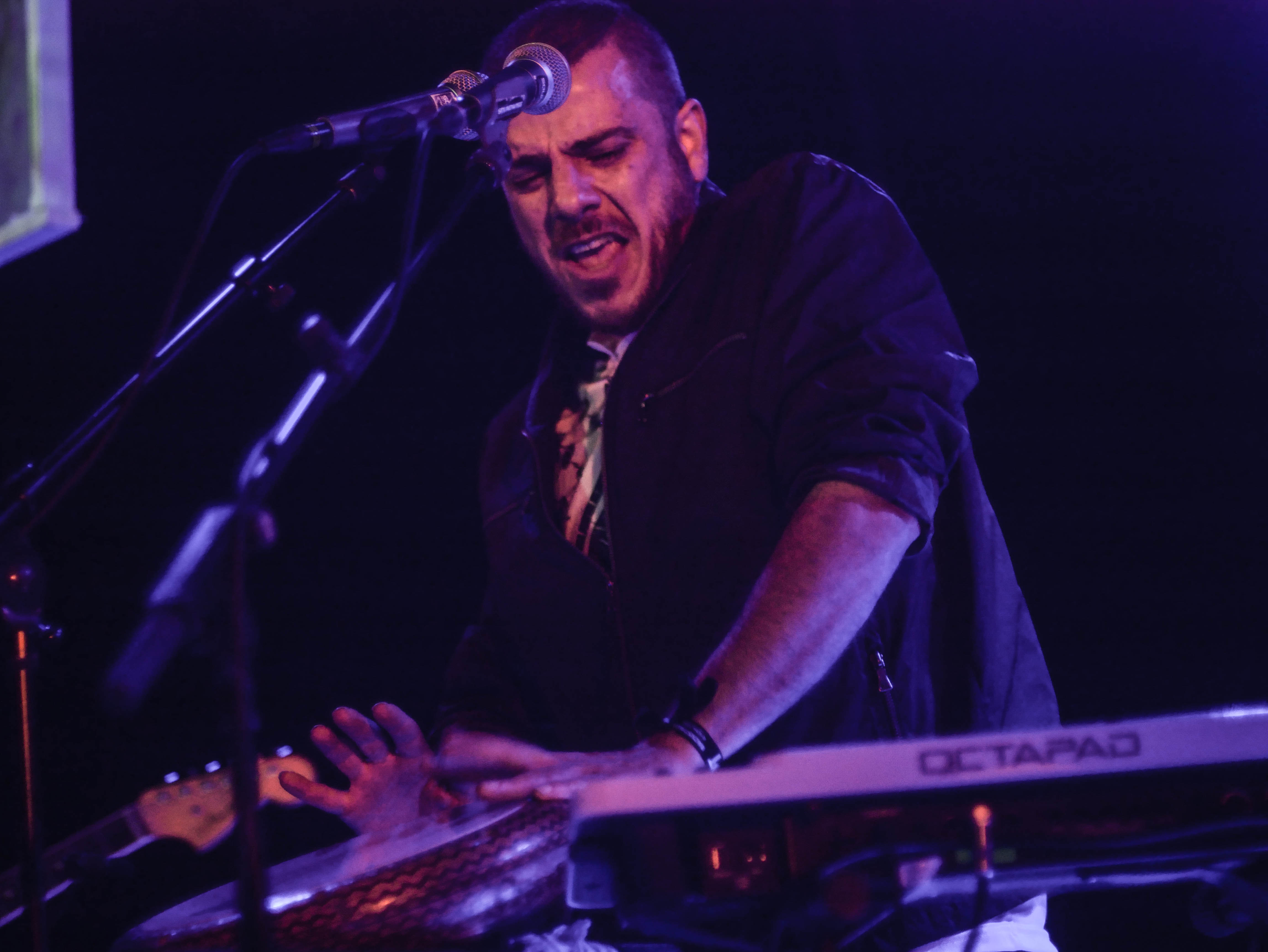 47Soul entranced the crowd at the Roots and Hybrid Festival taking place in a carpeted dance hall with liquified visuals of reds and oranges on sheets that blended with the dancing crowd. Hands swung side to side as the quartet mixed Arabic and English with bouncing guitar lines, hypnotizing analog synth, and commanding drums sending their music to “cross borders, shut down walls, bring equality of all humankind…” in their home of Bilad Al-Sham and throughout the world. - Abbie Gobeli