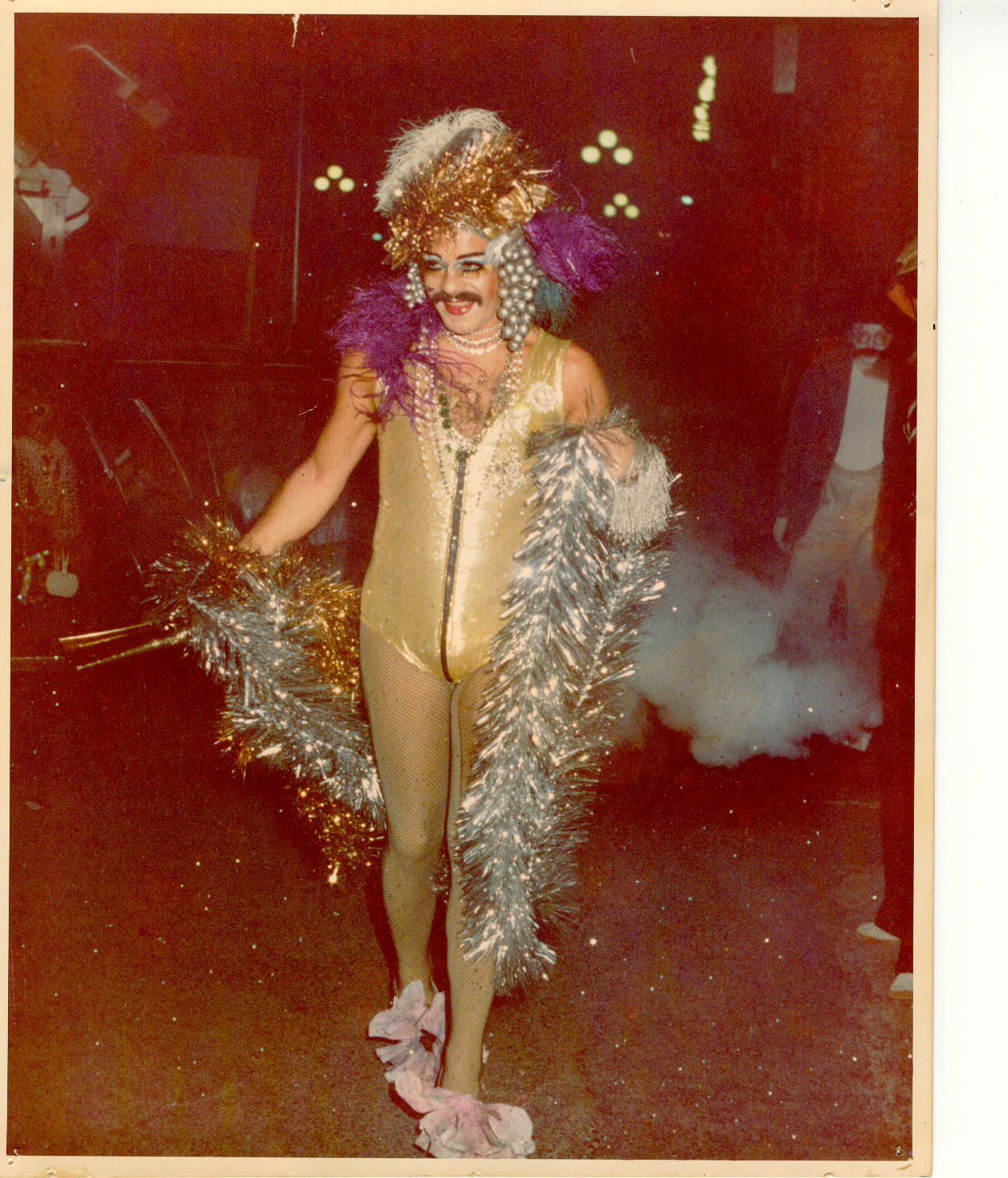 “Some of the photos that I do have show exaggerated drag, like one of Sats which has like three foot big boobs sticking out and a wig on top. The guys would look, would dress kind of femenine, but have beards. And glitter was usually all over their beard as well.