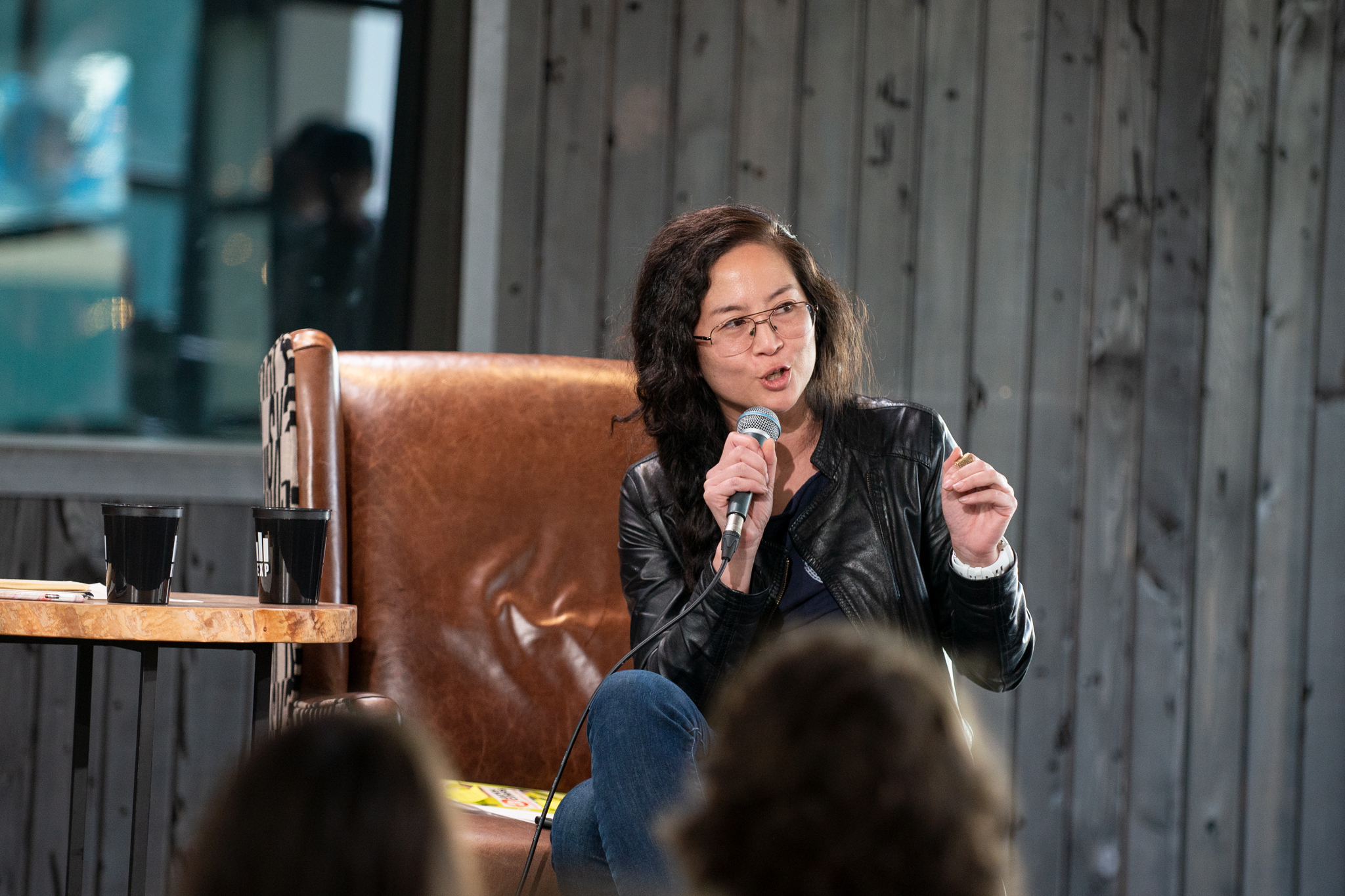 Chang brings up a Wizard of Oz reference and adjusts it: "In my reboot of the version, it's just gonna be a mirror. You pull back the curtain and it's you, you are The Man. We are the system!" She notes the fact that we've grown up in an age of punitive punishment, but the point of humanity is to add to it instead of dismantling it. Infusing joy into your interactions is key; it doesn't take much to be a nice person. Chang then asks about the steps and practices of helping build a community, helping build safer spaces.