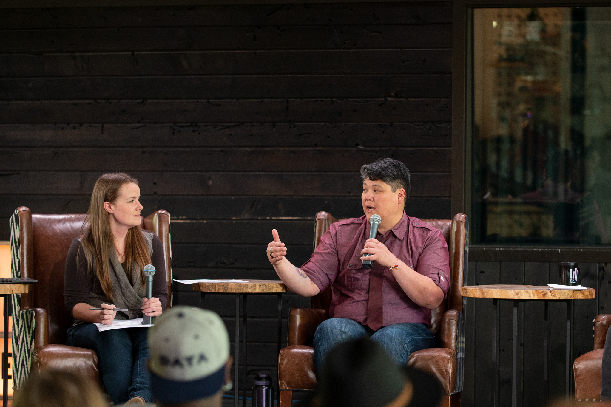 Fox asks how Tanimura would like to see the community supporting the arts, to which Tanimura replies, "I would love to see a bunch of loan officers in a room for training on bias and equity!"