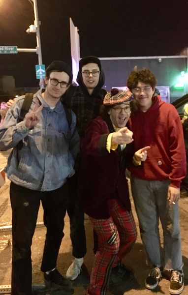 Austin at night. Roaming the streets like dogs, in search of a new bone to chew. The scene was bleak. Regardless of day or time, everyone we run into asks us if we are going to see Omni at the Barracuda. Their eyes are haunted with misery. In the distance, we spot a familiar hat sitting atop a familiar face. The Nard Man. For a moment, it's all worth it.