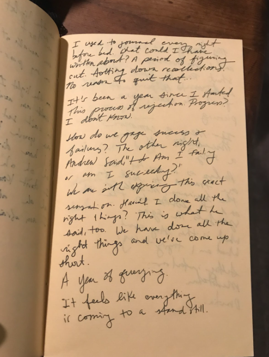 These entries are from a journal I had with me on a very brief tour for the release of This is What the Living Do in April 2019. This particular entry feels pretty embarrassing, to be honest, but there’s one line that sticks out to me: “The other night, Andrew said, ‘Am I failing or am I succeeding?’” This is an idea I think about a lot. It’s kind of like the way we’ll never really know what we look like in a mirror or from a photograph. Our brain fills in the gaps. We view our successes and failures through the fantasized perception of others.