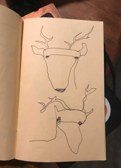 I sketched this deer in the back of the van on the way to Athens, GA (I think). I am very sorry to say that I got the top one tattooed on my arm two days later in Nashville. The whole band got different deer tattoos. The deer is the Fauvely spirit animal. They are wild, yet demure, and everyone is happy to see them.