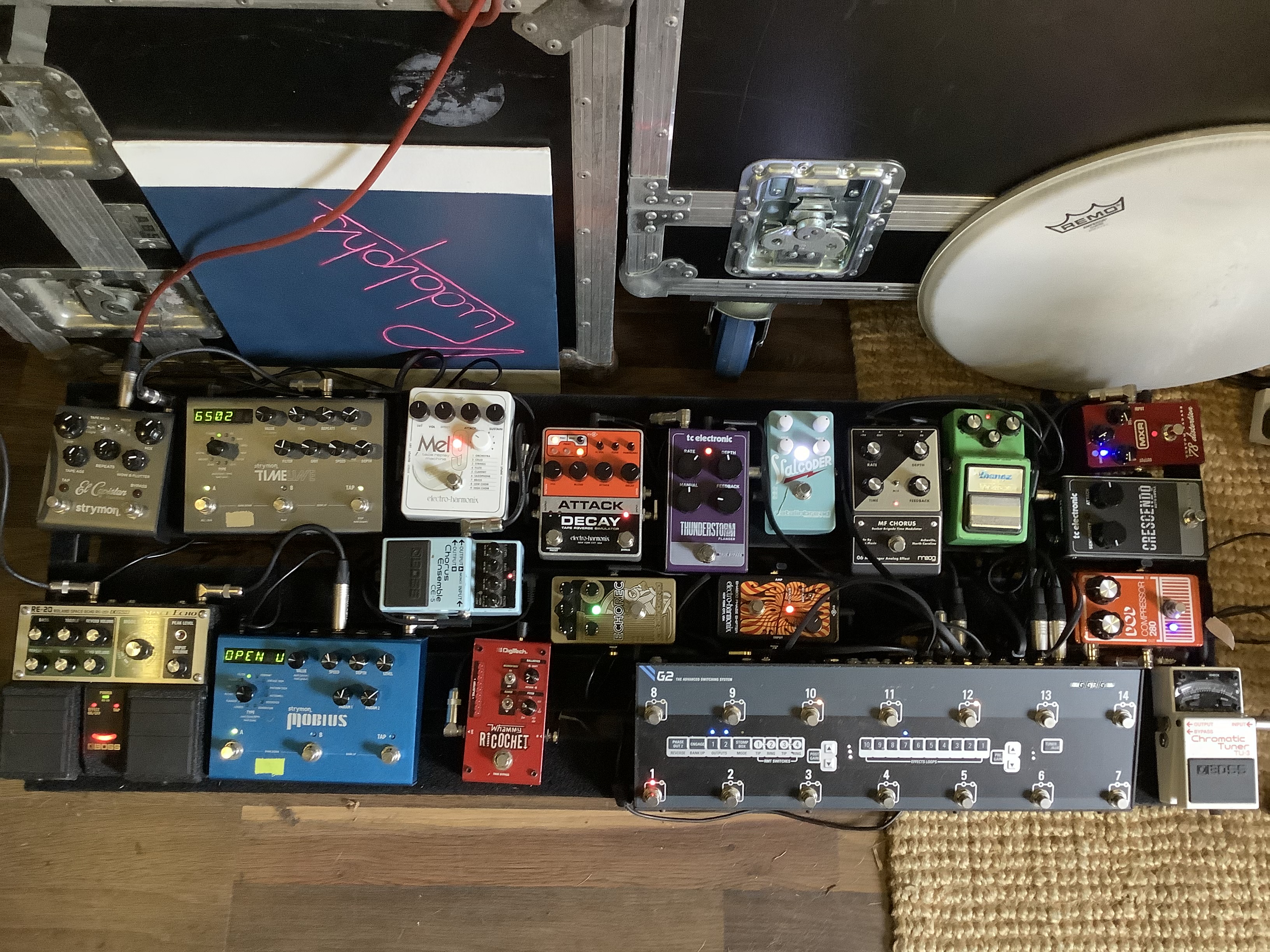 The G2 switching system has been a bit of a life saver. It saves an awful lot of hassle having all your set-ups saved and accessible. I was pleasantly surprised with my relatively budget-bracket TC Thurnderstorm flanger, which is the best I’ve ever owned. It’s a real workhorse and has great depth.