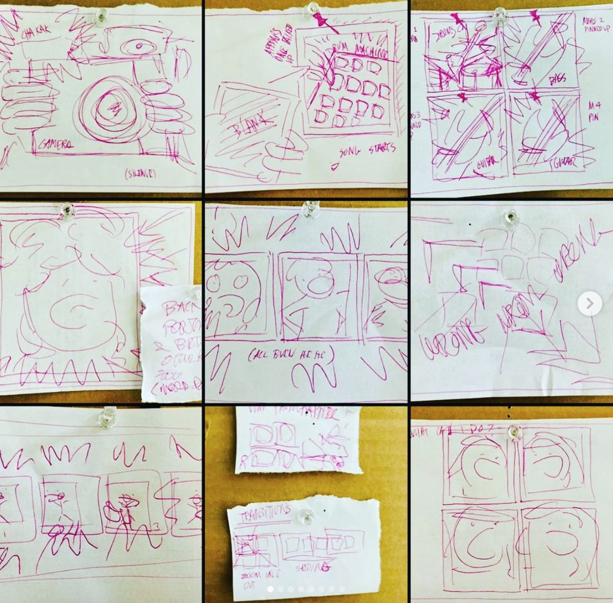 Eloise: ...And then the video, the idea was based off of that. And we drew a storyboard which Lucia is getting right now. And we came up with a bunch of ideas and then directors helped us with it...
