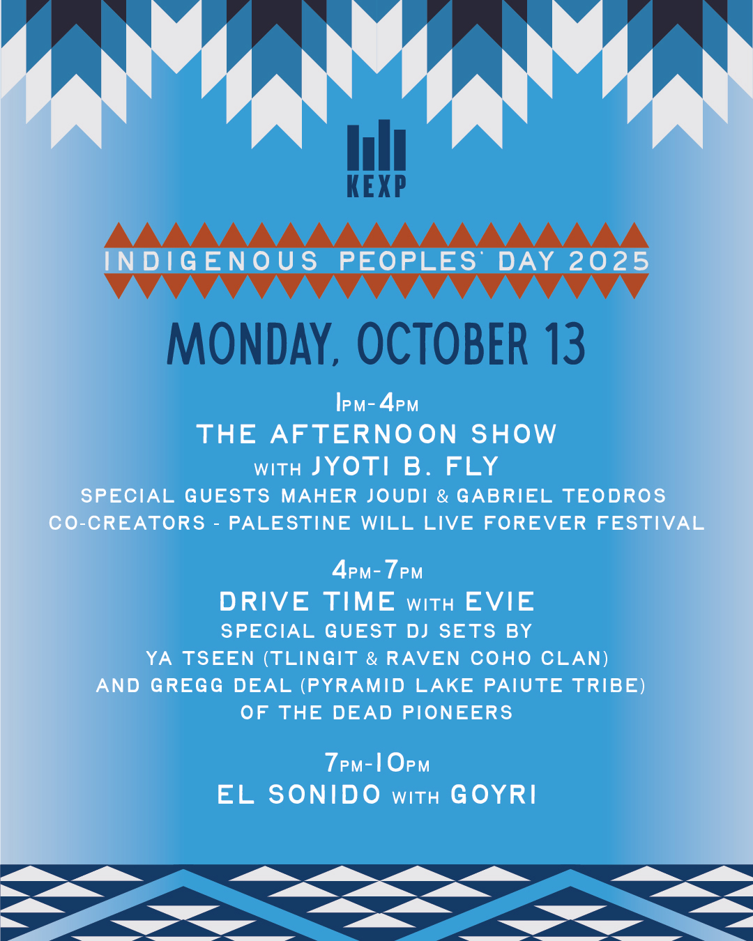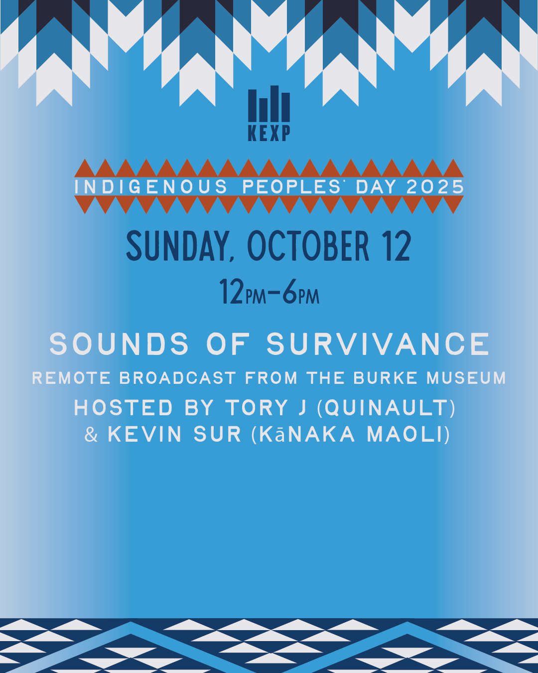Join KEXP as we celebrated Indigenous Peoples’ Day. On Sunday, October 12th, Kevin Sur and Sounds of Survivance co-host Tory J broadcasted live from the Burke Museum in Seattle. Then on Monday, October 13th, it was an all-day celebration featuring a special DJ lineup.