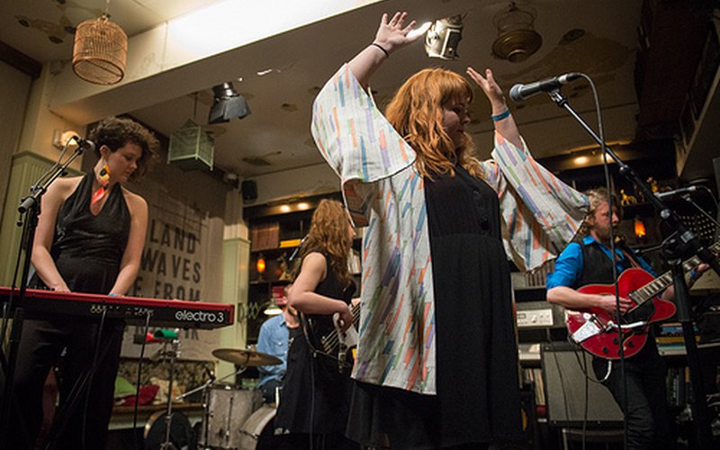 Closing out day two of the KEXP broadcast live from KEX Hostel at Iceland Airwaves is dancetastic Icelandic disco band Boogie Trouble. The population may be small, but Iceland leaves no stone unturned when it comes to exploring genres. Tonight’s closing act is a great example. Fronted by sweet-voiced Klara Arnalds (sister of Ólöf Arnalds), the band’s funky basslines (courtesy of bassist Ingibjörg Elsa Turchi, formerly of Rökkurró) and toe-tappin’ beats may leave you stricken with long-eradicated disco fever. They’re currently recording first record.
