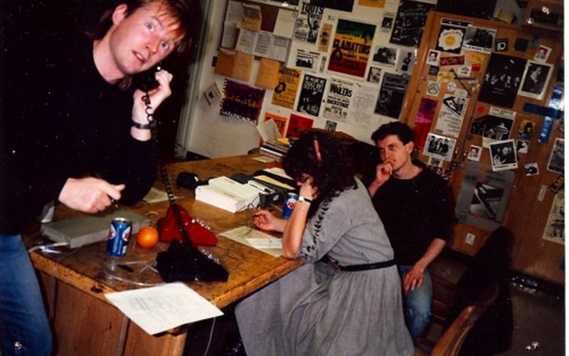 Life was a little different at KEXP back in 1987. The station was still called KCMU and it could only be heard if you were within roughly 15 miles of the University of Washington campus. The playlist was already pretty eclectic (as those of you who tuned into my Top 90.3 of 1987 special last autumn will recall), but our fundraising techniques weren't as sophisticated as they are today. See the photo above? That was the nerve center of the drives circa 1987: a desk with two phones.