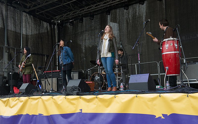 The rain hadn't let up as Pollens took the stage in the middle of the University of Washington's Red Square, but students, passersby and intrepid fans were lured to the stage by a hypnotic, pulsating beat. Their song "Travelers" got the crowd moving and warmed up for the rest of the energetic set. Pollens have a tribal sound that inspired some very entertaining dancing. The final song, "Look Present" started off in a trance like state before exploding into a beautiful harmony with pounding percussion.