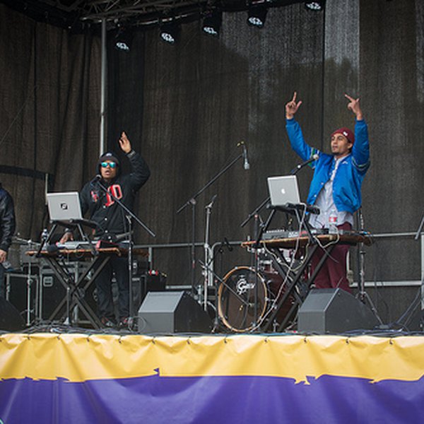 We got a chance to hear them jam together in their closing set for our broadcast at UW's Red Square during Hood to Hood 2013. Their first song "Brother" was an almost soothing venture that paired very well with the weather. The new addition Sam Miller on the keyboard brought out an entire new level to their usual drum heavy sound. Cunningham's unique guitar rifts and booming voice ("We Want It All" and "Simple Fates") were as fun to listen to as it was to watch him jump around stage. They even played some brand new material, "Live Alone" and "Voices", for those awesome fans who braved the rain- the latter of which had an unbelievable drum solo.