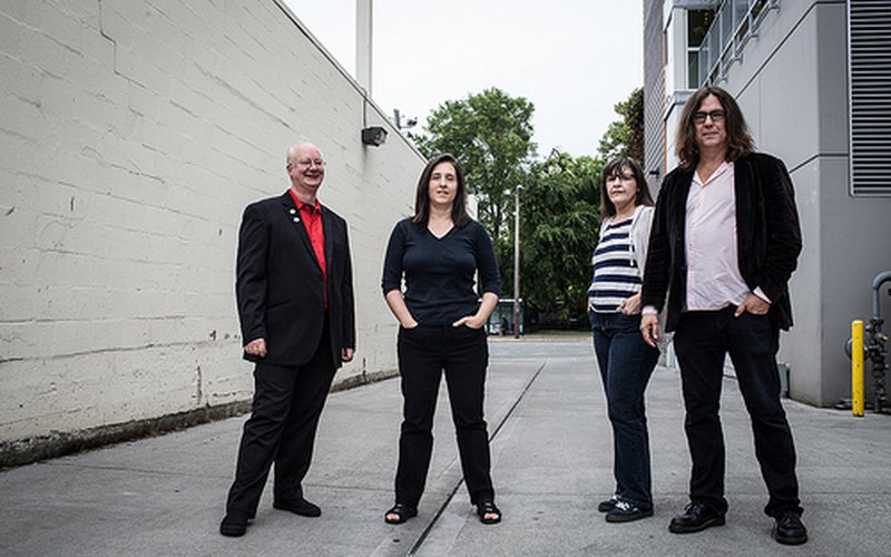 Fearlessly dabbling in the gaudy with their electro pop sound, Future Bible Heroes began as a project of The Magnetic Fields' Stephin Merritt and DJ Christopher Ewen, but gradually evolved into a substantial group of talented musicians. Eleven years after the release of their sophomore album, Eternal Youth, Future Bible Heroes are back with Partygoing. Maybe it takes a certain kind of humor to enjoy titles like "Keep Your Children in a Coma" and "Let's Go to Sleep (And Never Come Back)", but the fun is affirmed upon listening to the songs themselves, with lyrics like "If it's not weird, it's not romance." Recently, the group -- sans Merritt, who is nursing an ailing ear -- graced KEXP with their dark sense of humor for a live set in our studio.