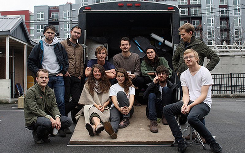 In Portland, it takes a village. Or nearly that, at least, to bring to life the songs of Kyle Morton. Over three albums and a handful of EPs, the 11-member group Typhoon build gorgeously orchestrated folk pop around Morton's uniquely intimate and personal lyrics. Morton, who nearly died of Lyme Disease in his youth were it not for "modern science" and a donated kidney from his dad, explores notions of mortality, time and place as though he were on "borrowed time". It's time well spent, though, as the music this band of close friends creates is equally cathartic for listeners, who can't help but sing along wtih the anthemic choruses. Late last year, Typhoon swept into the KEXP studio, squeezed all 11 members into our small space, and performed two singles and a B-side from the new album, White Lighter, due tomorrow on Roll Call Records. Watch the videos here: