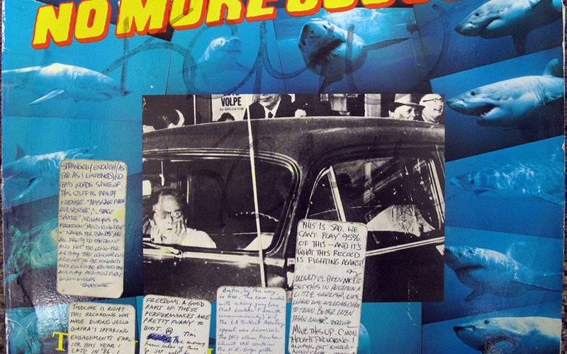 "Strangely enough (as far as I listened) no bad words. Some of this stuff is pretty intense. 'Message from Our Sponsor,' '... Space Shuttle,' 'Urinalysis is Freedom,' 'Mild Kingdom' + 'Names for Bands' are pretty to the point and not too long for airplay. The longer cuts are not to be ignored and could be edited for airplay. Audition first." "Toddcore is right. This recording was made during Jello Biafra's speaking engagements earlier this year/late in '86. I saw Jello at the UW + he was both entertaining + informative. Jello has a knack for finding the hypocrisy in restrictions on our freedoms + in the words of those who would restrict those freedoms. A good part of these performances are pretty funny to boot." "The money from sales of this LP set will be used to offset the expenses incurred by Jello in his recent censorship case." "There are some red dots but you could audition segments of those cuts and then play them safely." "Biafra, by the way, is free. The case ended with a hung jury (one that couldn't decide unanimously) and the LA District Attorney's appeal was dismissed. The DK's album Frankenchrist still contains the H.R. Giger poster that was the center of this controversy." "But don't think the problems are over yet." "I almost don't care after listening to this. Hyperbolic sloganeering has never turned me on. The man lacks imagination, and nothing on this record is as informative or provocative as any issue of R&R Confidential." "This is sad. We can't play 95% of this - and it's what this record is fighting against!" "Would've been nice to get this in rotation a little earlier, like when we welcomed him to town. Better late than never?" "Move this up. C'mon. Thought provoking. I always get encouraging calls." |