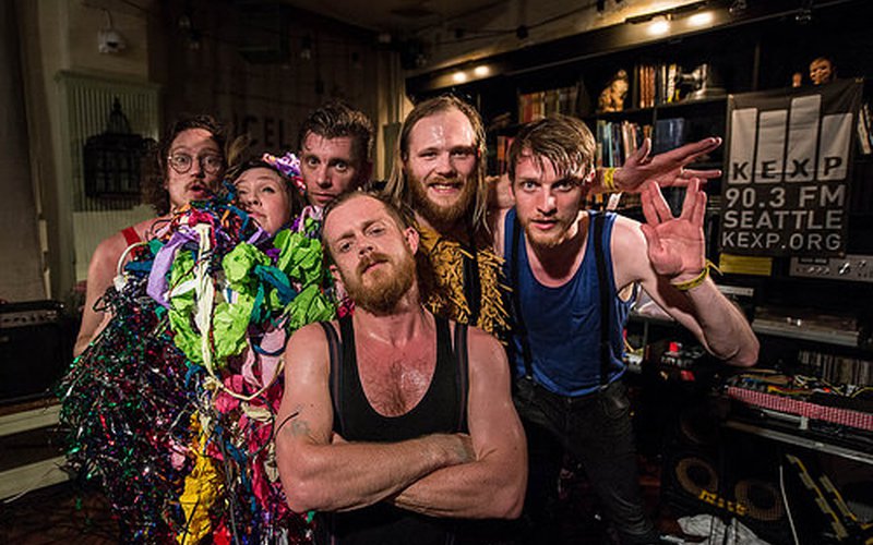 Did you come to Iceland Airwaves to lose your mind? FM Belfast and their fans certainly did. Our fourth show of the day at Kex Hostel was Iceland's highest energy party act, as we once again featured the typically headlining band in this very intimate space during our broadcast. This electro pop outfit has a reputation of putting on a pure, good feeling bacchanalia and their performances are more dance party than anything else. This is the show that Icelanders go to to completely let loose and sweat their cares away.