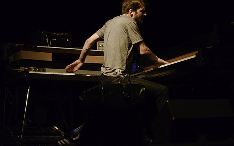 The Triple Door was the place to be last night if you're a fan of Decibel Festival and need something to tide you over until September. The venue featured two identical back to back shows of Erased Tapes artists Nils Frahm and Douglas Dare. The two pianists made for an impressive showcase of everything from classical, singer-songwriter piano ballads to moody, guttural drum machine compositions with heavy distortion. Nils Frahm has performed at multiple Optical showcases during Decibel 2012 and 2013. These performances usually take place earlier in the evening in the small recital theater at Benaroya, and feature artists whose work melds well with visual collaboration. While other artists worked with video jockeys or slideshows, Frahm served as his own visual accompaniment. His intense stage presence is an experience all its own, as he juggles two or three keyboards, a grand piano, and a drum machine. The keyboards are set up at an angle around him, giving the impression of Frahm as some kind of mad organist racing from one set of keys to another.