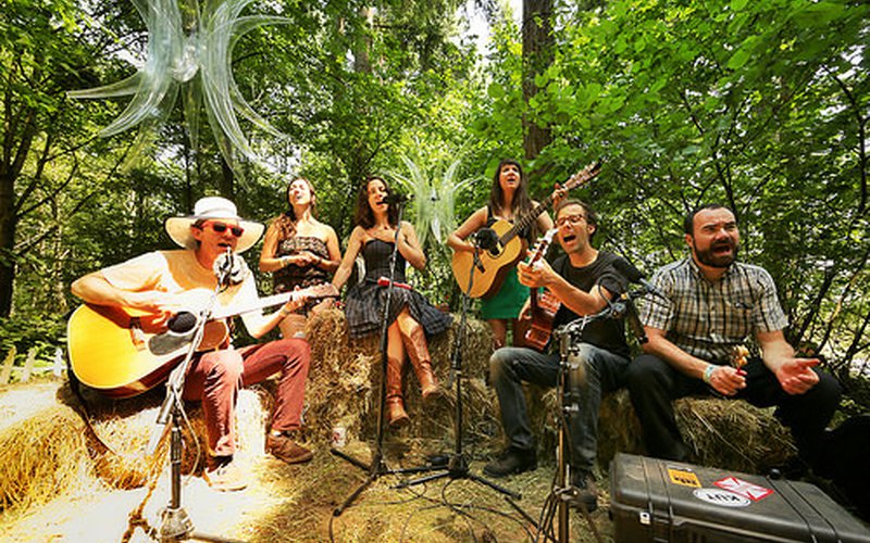 We've recorded a lot of unique performances during Pickathon over the past few years, but there's nothing quite like lush orchestration and natural harmonies to complement the gorgeous wooded oasis that is the Bunny Glade. Two of the bigger ensembles this year were also two of the most enjoyable, including the lively sing-along-friendly Portland band Ages and Ages and Boston folk quartet Quilt, both of which we've hosted in the KEXP studio recently but also both that seem even more at home in the woods.
