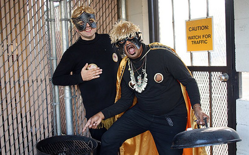 A true dynamic duo, Montreal’s King Khan and BBQ Show dropped by the KEXP live room to flaunt their tasty brand of retro garage and doo wop ditties. Marinated in all types of awesome sauce, this gruesome twosome wet our palates with a preview of succulent songs off their upcoming We Are The Champion release coming out on In The Red Records. With the tongue firmly in cheek, songs like "Kiss My Sister's Fists" and the incredibly addictive "Alone Again" tread the fine line between crudely raw to intelligently intricate in their creation, but are nevertheless always memorable. Check out the full set and watch the masked duo expose their talents as well as their nipples.