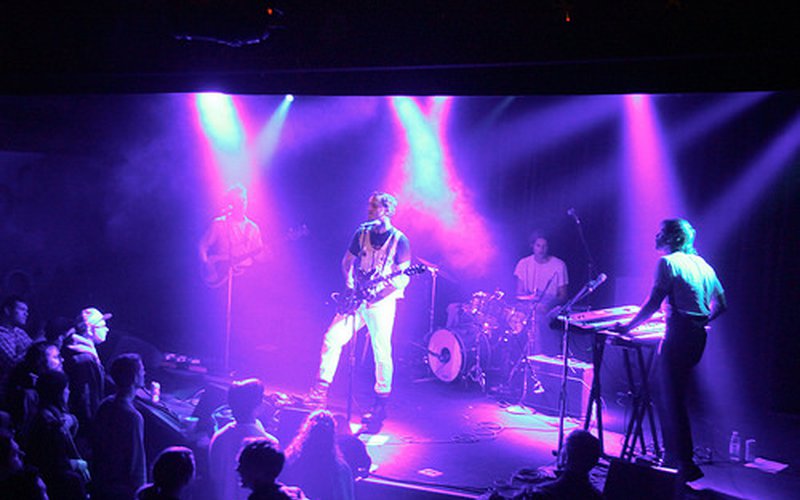 There are lots of reasons for two bands to tour with each other. For example, they might have a similar fanbase. Or, they might have a similar sound, and can cater to a single collaborative night of music fairly easily. Or, in the case of Los Angeles pairing Gardens & Villa and De Lux, they might have written their newest album with the same dystopian thoughts stewing in their minds. While the synthesizer may link these two from a distance, it's the motifs that really put them hand in hand with each other on this six date west coast tour leg. In June, De Lux dropped their second LP, Generation, on Innovative Leisure, an album that explores the weird world of modern communication with the backdrop of increasingly intelligent technology creeping up behind. In August, Gardens & Villa released their third LP Music For Dogs on Secretly Canadian, and told the story of how a similar world to that of De Lux has changed their lives and their loves in every way. Where De Lux tackle communication and perception, Gardens tackle culture and disposition, but in both, we see a weird modern world where the givens of yesterday seem to be misplaced among our increasingly complicated world of wires. De Lux supports Gardens into the last of the year for their lengthy touring behind the new record, and Gardens couldn't have picked a better band to finish out with. Together, Gardens & Villa and De Lux put on a fantastic Monday night show, full of startling conclusions and plenty of whimsical charm.De Lux's Sean Guerin and Isaac Franco can transport you like none other. Within a minute of the band's opening, Generation opener "LA Threshold" has Seattle a world away, nearly a thousand miles down the coast in a weird, wacky Hollywoodland where "selfie" is an acceptable form of daily speech for anyone and everyone. The frantic, bombastic sound of the band helps gives the mental picture some skin. De Lux take hints from Talking Heads, Modern Lovers, and LCD Soundsystem, mixing explosive dance music with erratic songwriting and direction. "It All Works All The Time" from the first record, Voyage, takes a tongue in cheek approach to expectation over a melodic, danceable rock track, where Generation's "Simba Simba Simba" goes balearic with the rhythm and ventures fully into a groove realm. But nothing about De Lux causes the listener to become disenchanted. Goofy video game visuals, including classic arcade Star Wars and Super Nintendo The Lion King (for "Simba"), help cushion the heaviness of the disenchanted urban living in the lyrics. The band ends with "Oh Man The Future", their own dystopian take on LCD's "Pow Pow". Sean drops the guitar to dance like a madman and the resulting chaos is well appreciated. The stage definitely needed to cool before it was a safe temperature for Gardens & Villa to keep the night going forward.