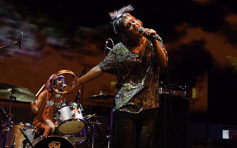 Up to that point, the artists who had taken the stage had imbued the night with strong doses of humor, empathy, and volume in various combinations across the night, so in Tacocat, a band who do all three in a direct and incredibly catchy manner, the night had a can't-fail closer. Emily Nokes, Bree McKenna, Eric Randall, and Lelah Maupin have been among Seattle's most beloved acts for a minute now and it's easy to see why: they're, simply put, one of the city's most outright fun acts. As Maupin bashes through uptempo surf beats (her awesome purple hairbow fell off before she could begin the second song), the rest of the band follow suit with as just much gusto, Randall and McKenna charging through fuzzy riffs and Nokes alternating between her chiming vocals and completely necessary tambourine. Their songs have plenty of smirk worthy turns – as a band called Tacocat should – but, as Nokes pointed out at a panel earlier that day, they're not a "joke band". Rather, their humorous takes on Seattle's crummy weather ("Bridge to Hawaii"), menstruation (the unbelievably hooky "Crimson Wave"), and coming of age via acid ("Psychedelic Quinceañera") give the songs a sense of empathy, if not a sense of being completely relatable, through earworm choruses and an undeniable affability. After their final song, Miley Cyrus's "Party In The USA" came over the PA and the band invited members of the crowd to dance onstage with them, Nokes made her final dispatch from the microphone: "Pop music foreverrrrrrrrrrrr!" In the course of a few hours, four of Seattle's best artists hadn't just showcased the songs that are working through patriarchal bullshit, loneliness, millennial existentialism, and the perpetual quest to have a killer night out with your buds, they'd thrown the best party of the weekend in the process. To paraphrase Nokes, Seattle music foreverrrrrrrrrr.