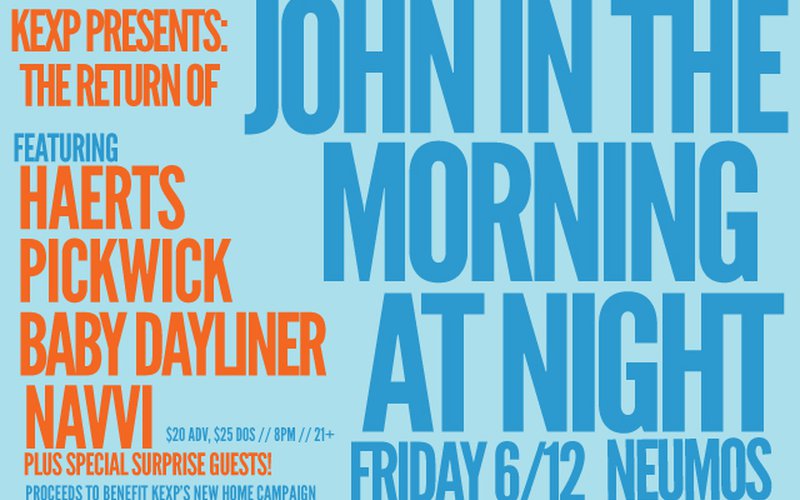 After a six-year absence, KEXP’s John in the Morning at Night returns on Friday, June 12, at Neumos. For the Morning Faithful and everyone else, this benefit for KEXP's New Home, featuring performances from Morning Show favorites Haerts, Pickwick, Baby Dayliner, and NAVVI, is one not to miss. We won't even mention the special surprise guests!