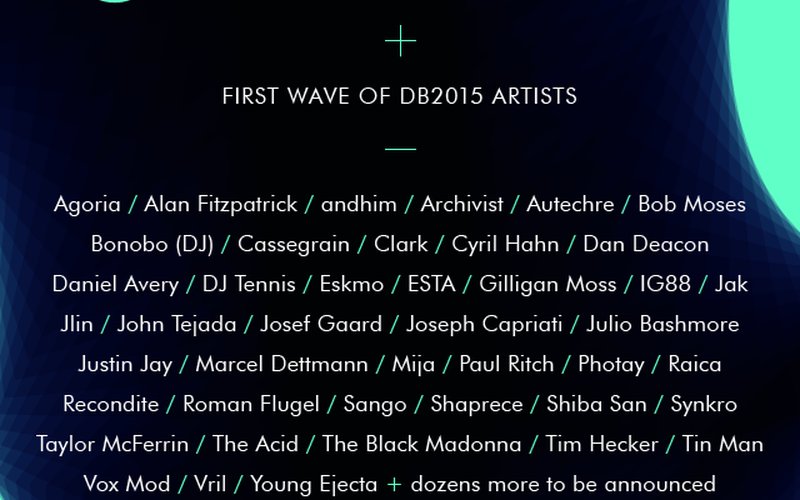 Agoria / Alan Fitzpatrick / andhim / Archivist / Autechre / Bob Moses / Bonobo (DJ) / Cassegrain / Clark / Cyril Hahn / Dan Deacon / Daniel Avery / DJ Tennis / Eskmo / ESTA / Gilligan Moss / IG88 / Jak / Jlin / Joseph Capriati / John Tejada / Josef Gaard / Julio Bashmore / Justin Jay / Marcel Dettmann / Mija / Paul Ritch / Photay / Raica / Recondite / Roman Flügel / Sango / Shaprece / Shiba San / Synkro / Taylor McFerrin / The Acid / The Black Madonna / Tim Hecker / Tin Man / Vox Mod / Vril / Young Ejecta + dozens more TBAIn addition to the excellent line-up, there will be the usual workshops geared towards audio/visual technology, lectures from marquee artists and educators, interactive industry happy hour events, and the return of our dB in the Park event at Volunteer Park.