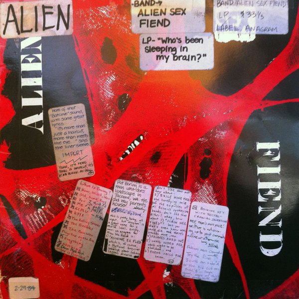 The lively 1984 discussion that took place among the KCMU DJ-erati on the cover of the first LP by Alien Sex Fiend might just take the prize for greatest number of words with the least to do with the music at hand. It definitely has the most anagrams I've ever come across in my years of doing this …