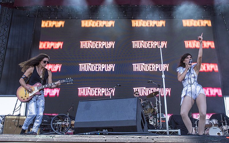 For the better part of a year, Thunderpussy has been going through a list of local Seattle clubs and conquering them one by one. For their second Sasquatch consecutive appearance (they explosively opened the small Yeti stage at last year's fest), the quartet roared the main stage open on Monday afternoon. If there was any question that Molly Sides and co. would have trouble adapting to a large outdoor stage from the small clubs they've come to excel in, the band quickly proved to be more than adept at bringing their theatrical rock and roll to a big stage. Sides and guitarist Whitney Petty are a hell of a pair to watch either up close or on a giant video screen, underscoring that they've sold out so many shows based solely on their live reputation. The band's debut release is still forthcoming, but if it generates enough buzz to justify a third Sasquatch appearance in as many years, Thunderpussy could very well get a chance to complete a trifecta of shows shredding with another force of nature in the background.