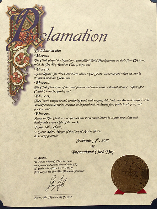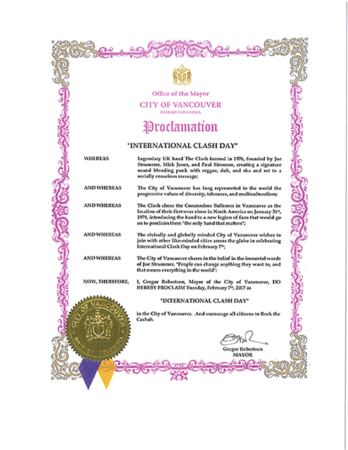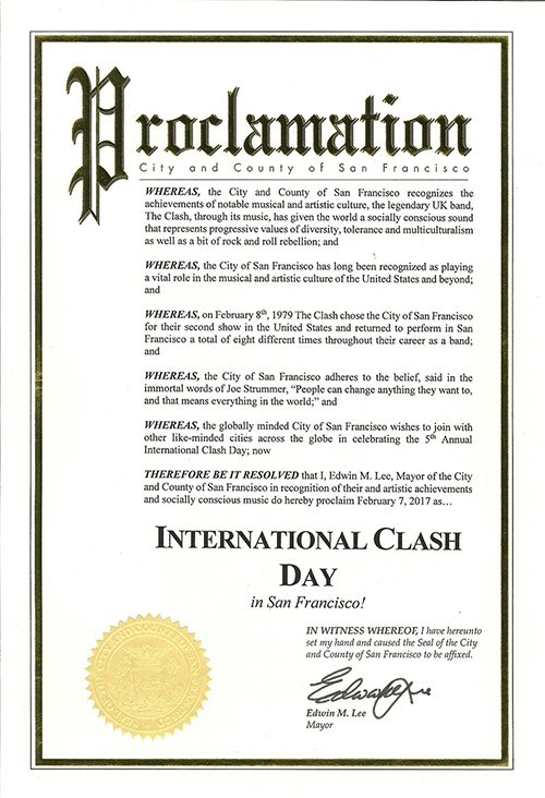 This year we also celebrate all of the world governments that have declared International Clash Day an official holiday: The City of Seattle, The State of Washington, The City of San Francisco, The City of Vancouver, BC, The City of Austin, and potentially more on the way!