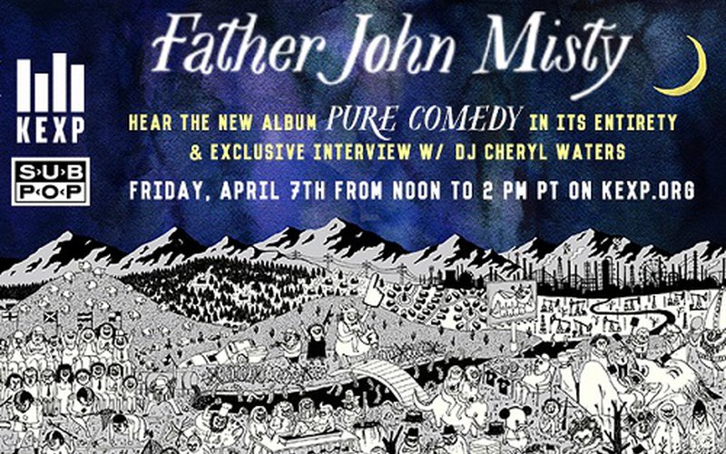 Tomorrow, April 7th, acclaimed singer/songwriter Father John Misty will premiere his new album, Pure Comedy, (Sub Pop) on The Midday Show with Cheryl Waters. During the show, KEXP will also air an exclusive conversation between the artist and Waters. Between noon and 2PM PST, listeners will get a glimpse into Father John Misty’s creative process and experience Pure Comedy in its entirety for the first time.