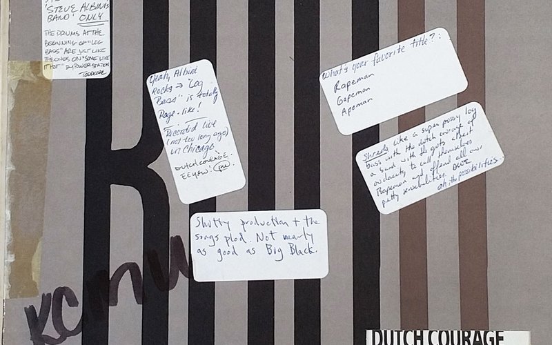 "Mention the band as - 'Steve Albini's Band' only." [I get what they're doing here, but I feel like that gives short shrift to the essential contributions of Rey Washam and David Wm. Sims.]"The drums at the beginning of 'Log Bass' are just like the ones on 'Some Like It Hot' by Power Station." [Holy. Shit.] [Also, wow, that Power Station video.]