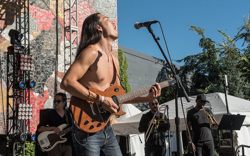 Thirty minutes. That's all the time Seattle reggae champs Kore Ionz had to win over a crowd at the Mural Amphitheatre on the first afternoon of the Bumbershoot Music & Arts Festival. Frontman Daniel Pak, shirtless in the hot sun with a red, green, and yellow strap running across his chest (that'll be an interesting sunburn), wasted no time creating a good vibe. Pak built rapport with the crowd during an extended soundcheck caused by a fussy mic cable, chatting with people in the pit, throwing shakas to those further back, and eventually calling out, "Are you ready to have fun, Seattle?" The crowd -- laying in the grass, lounging in the beer garden, and hiding under the trees -- cheered back happily. While Pak's early efforts to reach out to festgoers may seem insignificant, they spoke to the band's larger mission. "More than anything, I feel like my job is to connect with people," said Pak in an interview later that afternoon. "Once you got the chemistry... the music comes naturally."