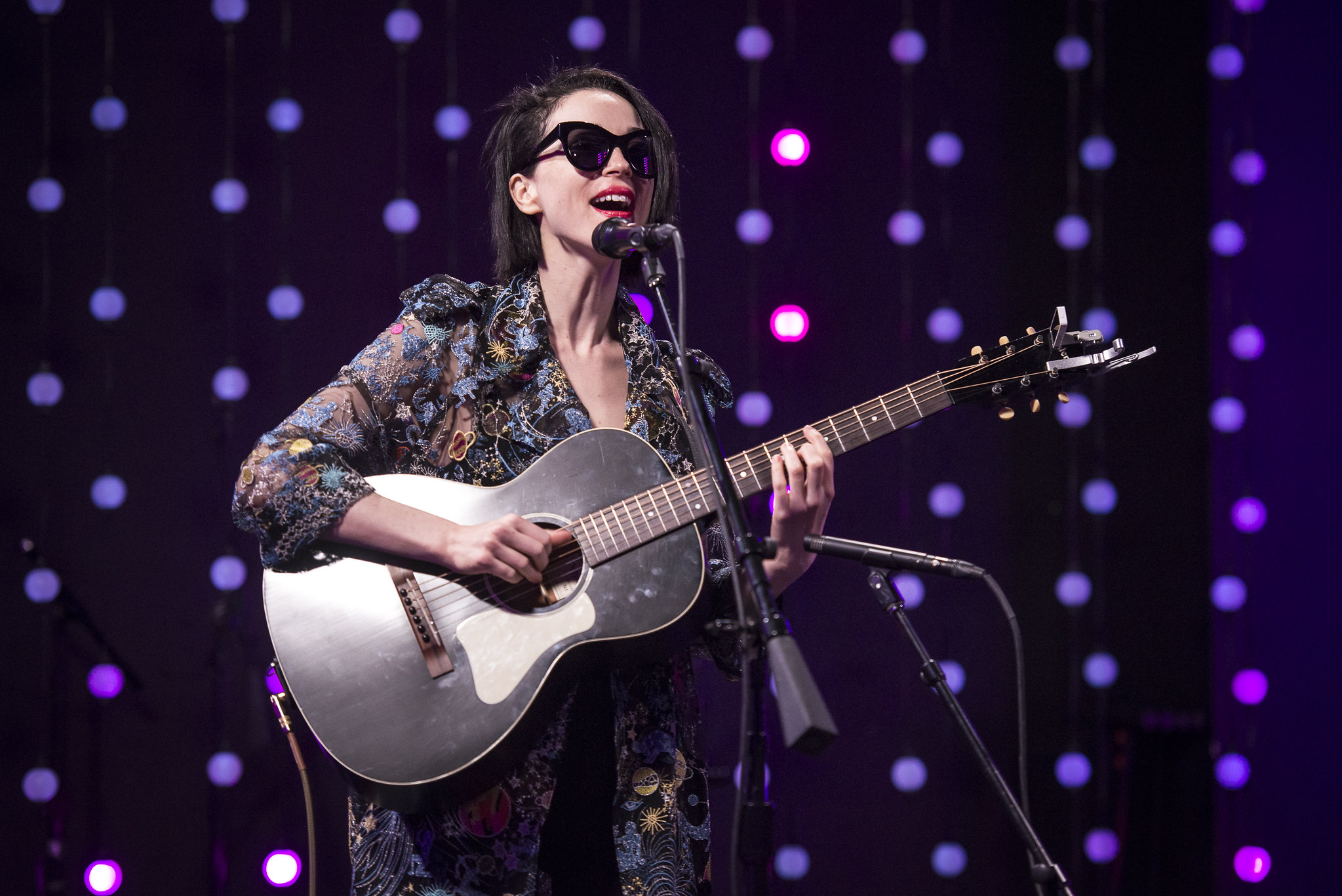 In the middle of her two night stand at The Moore Theatre here in Seattle, St. Vincent stopped by the KEXP studios to share songs from her latest LP, Masseduction (with a fan-favorite from 2011's Strange Mercy thrown in for fun). With just an acoustic guitar and her powerful voice, St. Vincent (real name: Annie Clark) stripped the intricately textured, densely produced sound of the new release, giving KEXP listeners a fresh new take on these tracks. Revisit her interview with DJ Cheryl Waters, where she talks about her recent film work, designing guitars, and her time hiding out in a bathroom here in Seattle.