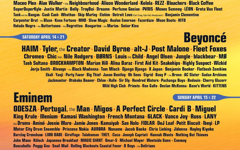 Rounding out the bill is an impressive cast of musicians including SZA, David Byrne, Kygo, Jamiroquai, St. Vincent, Migos, The War on Drugs, Vince Staples, Portugal The Man, HAIM, Tyler, the Creator, Miguel, alt-J, Angel Olsen, King Krule, Kamasi Washington, Yaeji, Noname, Princess Nokia, First Aid Kit, The Drums, Ibeyi, Japanese Breakfast, Jidenna, Alvvays, Cherry Glazer, BROCKHAMPTON, and many more.