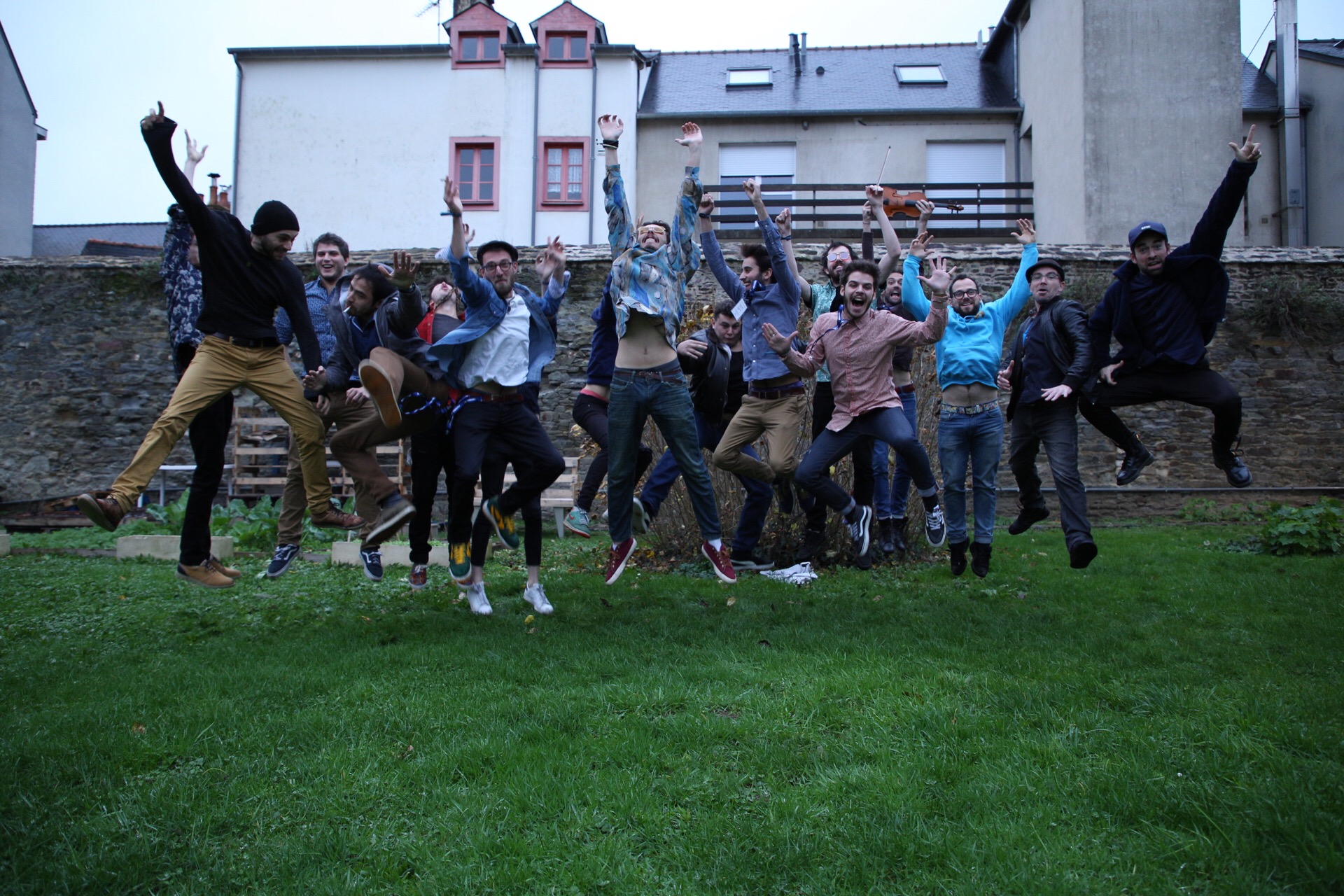 The next band was a complete change of mood (and size)! The Nâtah Big Band are from right here in Rennes. They formed in 2014 originally as 6 members, with Gabin (bombarde, a traditional Breton wind instrument), Clément (accordion), Rémi (wood flute), Kevin (guitar), Daravan (bass), and Basile (drums). Bretagne (or Brittany) is the mid-western region of France that has a deep Celtic lineage, with its own original language before they were assimilated unwillingly in with the rest of France, forced to speak the French language, shares characteristics with their Celtic cousins to the north in the UK. This includes the origins of the types of traditional instruments and music played in this region, which is what The Nâtah Big Band does as well. In 2016, the founding members decided to put a twist on their traditional sound, adding a horn and rhythm section and expanding from six members to 17 and the Big Band was born.