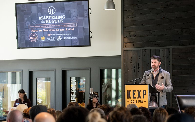 KEXP, Upstream Music Fest + Summit, MoPOP, and The Recording Academy have partnered together to present Mastering the Hustle: a panel discussion with six annual events, tackling a different topic to help emerging artists make better decisions earlier in their careers. Throughout the series, we’ll be discussing everything from how to get airplay, legal and licensing, healthcare for artists, and promoting your brand.