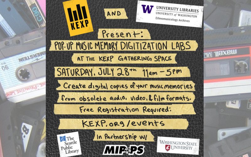 Join us on Saturday, July 28th from 11 AM -5 PM in the KEXP Gathering Space, for our Pop-Up Music Memory Digitization Labs. Archivists and librarians will be onsite with playback equipment ready to assist you in creating digital copies of your music memories from VHS tapes, cassettes, reel-to-reel recordings, digital audio tape and more at this special one-day pop-up event.