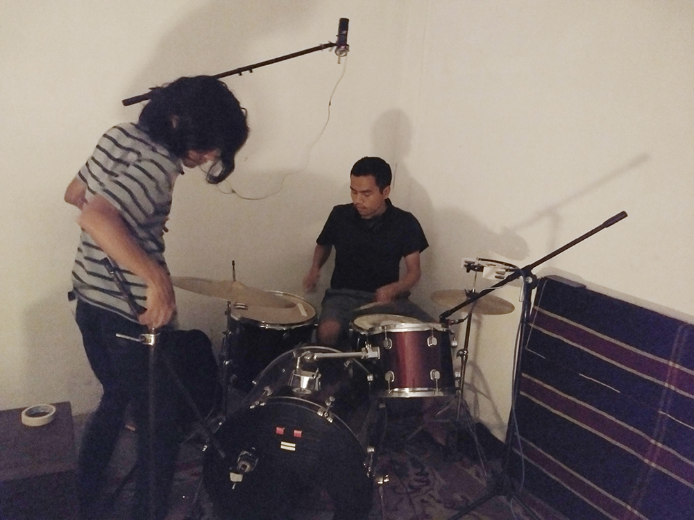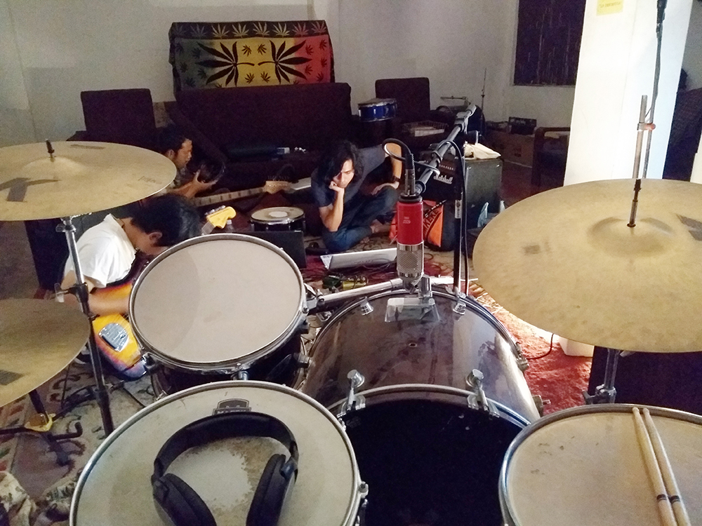 It's a DIY attempt and we self-produced it. So basically we have a friend whose name is Sudip Kongbrailatpam (who) helped us through and through from the day we got in touch with him for to help us out with the recording of our debut single. He is not a sound engineer or record as by profession. He has only (just) finished his studies. He did his engineering and but he absolutely loves electronics. He built his own microphones and, yeah, it wasn't recorded in a soundproof room. It was just an ordinary room. It was a lot of fun for us to even watch him go about recording every track, you know, because for the fact that we haven't even (ever been) in a recording studio and so obviously we have no idea how things work in the studio. But watching him like immaculately measuring... the distance from the snare to know where he would be placing the mic, finding the sweet spot on the amp how to mic it. So we owe him a lot. Like I don't I don't think it would be possible for us to have our album or our E.P. come to life had it not been (for) his support help.
