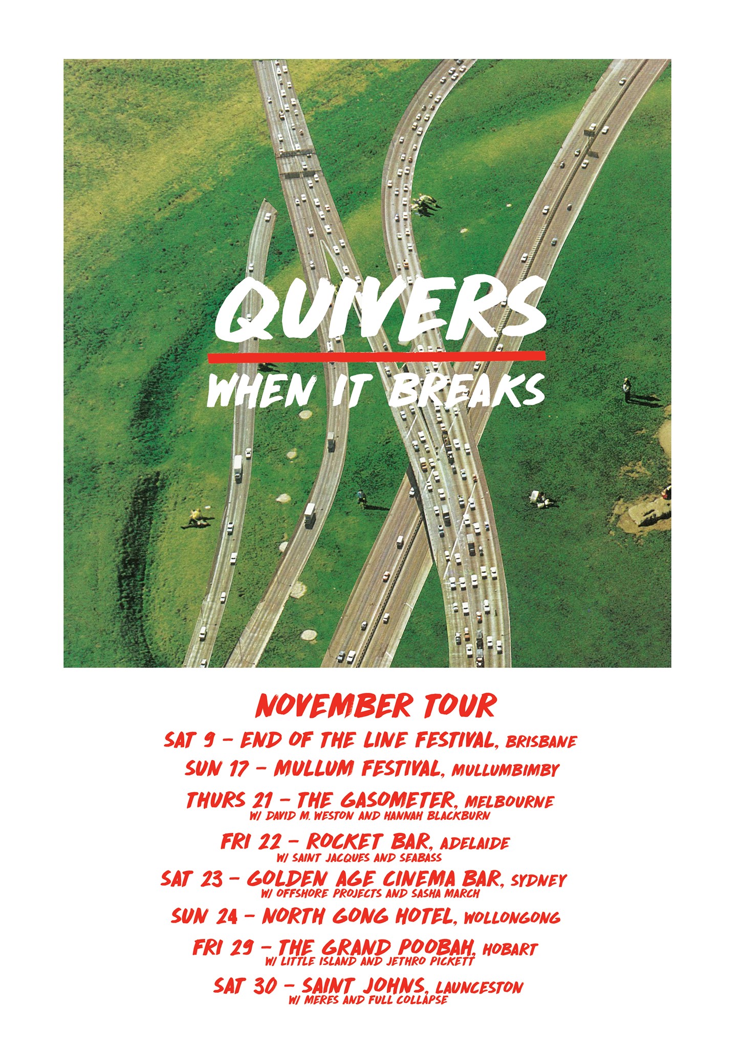 Australia's Quivers craft bright, jangly pop that draws influence from bands from their own backyard, like The Go-Betweens, and calls to mind bands from the '80s, like early-R.E.M., or in the case of today's featured track, the warm, crisp guitar sound of The La's. Today, KEXP premieres the new single "When It Breaks", as first heard earlier today on The Morning Show with John Richards.