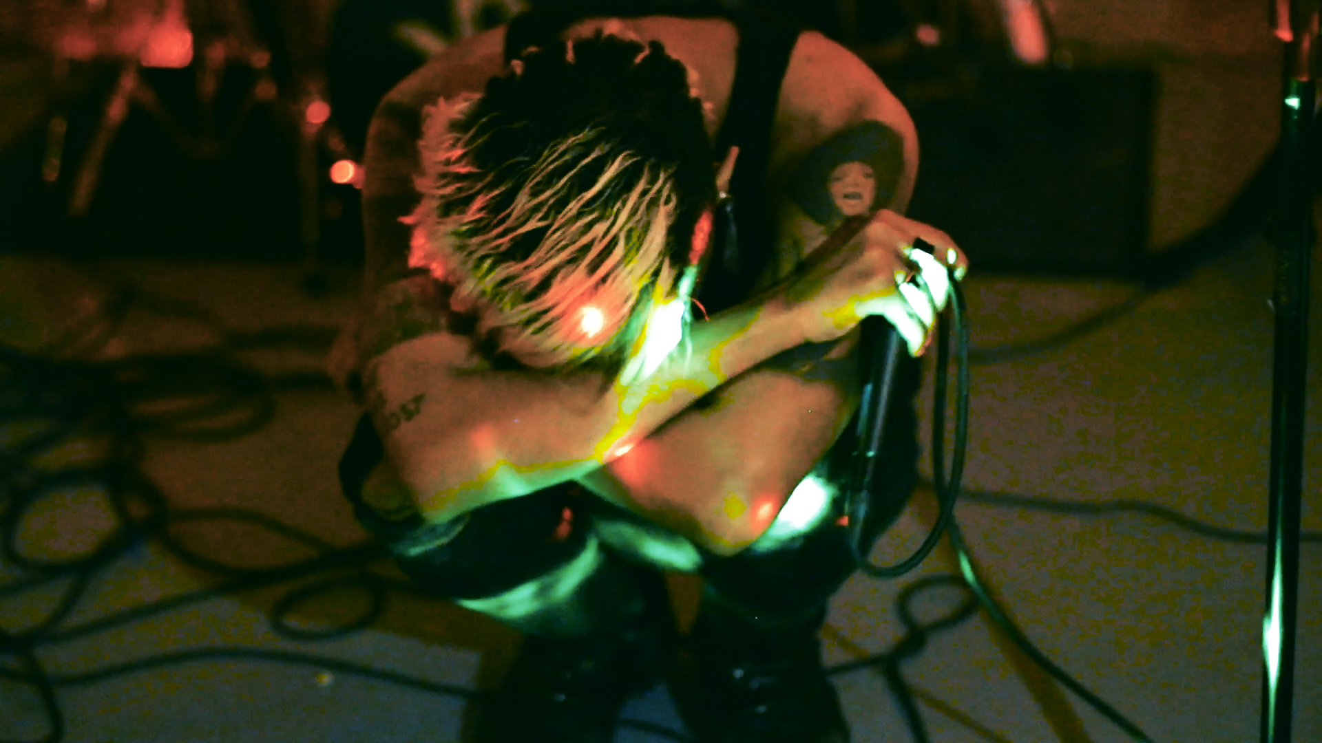 The video for "I'm not your type" follows Danny as they play a house show filled with members of Seattle's music scene (I'd point them out, but it's way more fun to make a game out of how many you can spot) and spotted with the colors of a party strobe light. The vibe is very indicative of playing house shows in the city; the makeshift "green room" which is actually just somebody's basement, the Home Depot canopy which exists as the venue space, idle chit-chat while leaning against a wooden fence. A blue pill is handed to Danny and they mull over the decision to take it in front of a bathroom mirror before going for it. The video ends with Danny on their knees in front of the crowd, eyes closed.