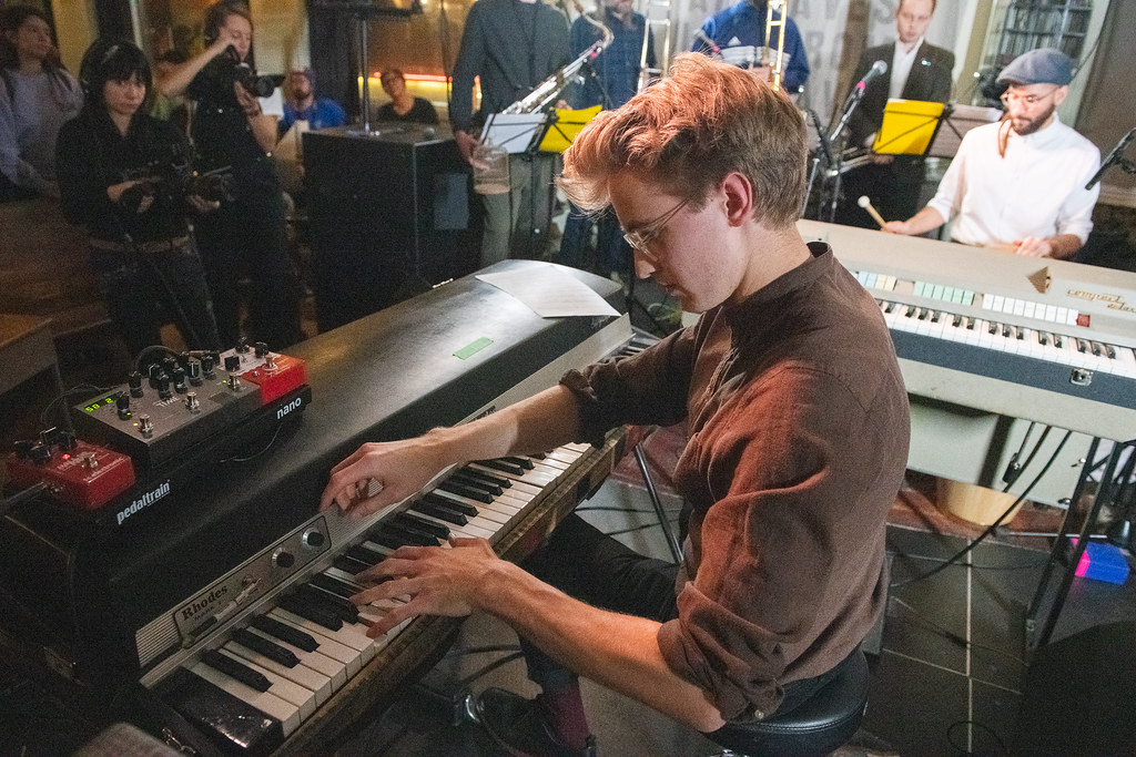 Up next was Icelandic prog-rock band Lucy In Blue. It was a major sonic shift from the previous performance, but just as immersive and spellbinding. When I caught up with the group after their set, they didn’t shy away from their love to classic acts like Pink Floyd and King Crimson. Even their luscious locks of hair and silk shirts suggested an affinity for the 1970s. But they’re far from just a nostalgic act. With vintage instruments in hand, they’d build up mind-bending arrangements that reverberated on the knick-knack adorned walls of Kex.