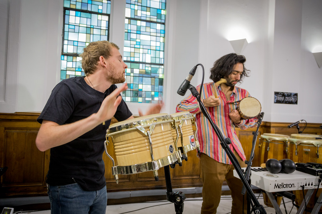 Fearing that the incredible music of Chouk Bwa would be pigeon-holed into niche “World Music”, they all began collaborating with Brussels electronic duo The Ångströmers to create a new and unique sound of layering electronic trance under intense, mesmerizing vocals and drums to create something different yet still keeping the traditional sounds front and center. The 4 songs performed during our KEXP session will all be on the new record to be released in 2020 on the Bongo Joe label, including a traditional Call for Gathering spiritual song, stories of spirits, being proud of being Haitian, and the topic of slavery and revolution. It was a truly amazing performance.