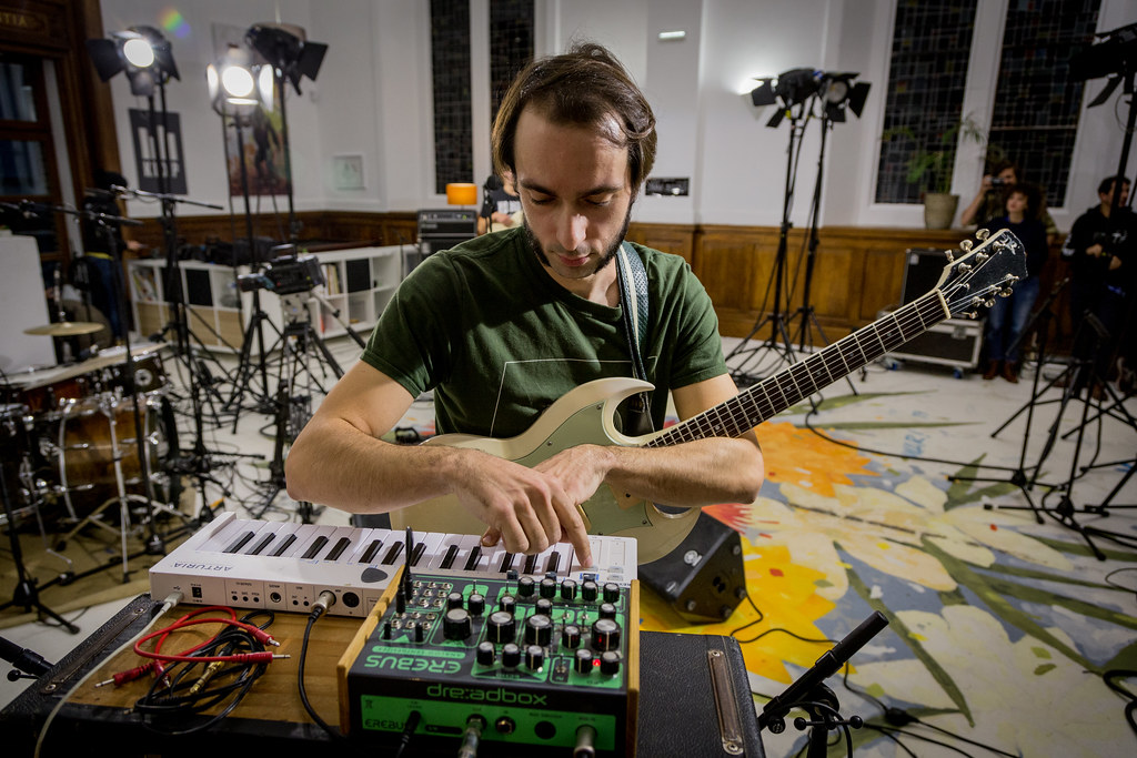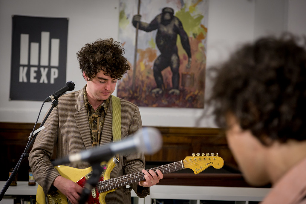 L’Éclair are structural improv extraordinaires out of Switzerland who are bringing the classic grooves of mid-century Afro-Cuban Jazz and Library music into the modern age. This is another performance that is hard to communicate in words how amazing the long, 10 to 15-minute structured jam sessions build into sweet satisfying resolution. Consisting of Sébastien Bui (keys), Elie Ghersinu (bass), Stefan Lilov (guitar), Yavor Lilov (drums), Quentin Pilet (bongos) Alain Sandri (congas), these 6 friends have been playing together since 2015, but have known each other since school. Just like in their performances, their records are recorded as live jams each slightly different than the others, so their KEXP session is another unique experience. Their latest album, Sauropoda was released in May of this year and they are due to release a new EP in April 2020.