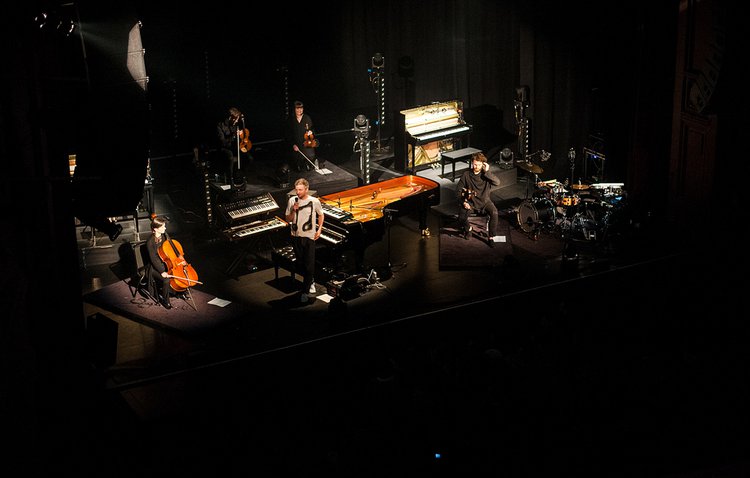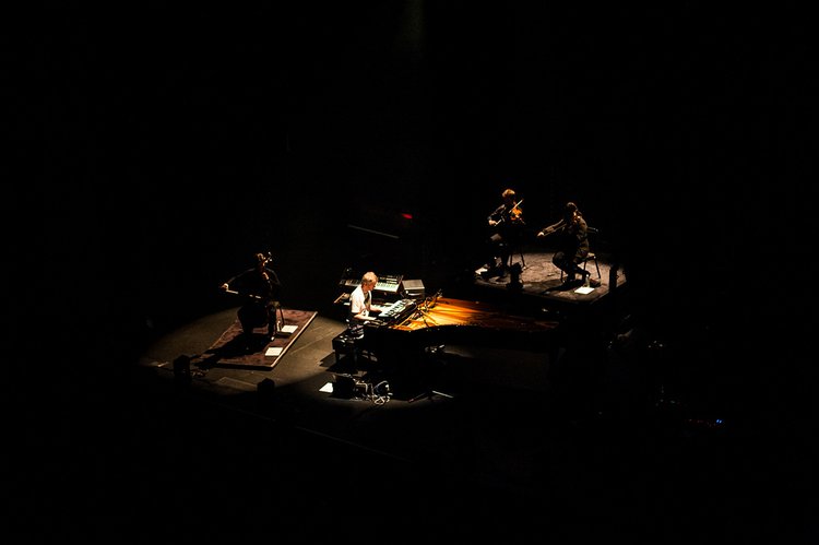 Arnalds enters quietly and bows. He then sits down at the piano and slowly other musicians emerge one at a time to take the stage, as a single spotlight focuses on Arnalds at the black grand piano. Backed by a string quartet — a cello, two violins, and one viola — they all receive their own specialized spotlight once their bows hit the strings to make a gorgeous spectacle of sound. Each musician’s spotlight fades when their playing stops and we’re back to focusing on Arnalds at the piano. We’re broken from the hypnotizing moment for Arnalds to explain the current predicament himself and the band is in. Apparently, they’d just flown from Mexico and some of their bags and crew didn’t make it — a plight he hypothesizes could possibly have something to do with the current government shutdown. He also caught the flu the other day, “So I’ve just taken a lot of drugs. That’s why I’m currently smiling and not crying.” Despite the bind he’s in, Arnalds is light-hearted and quite hilarious. If this music thing doesn’t work out, a career in comedy could be another road for him.